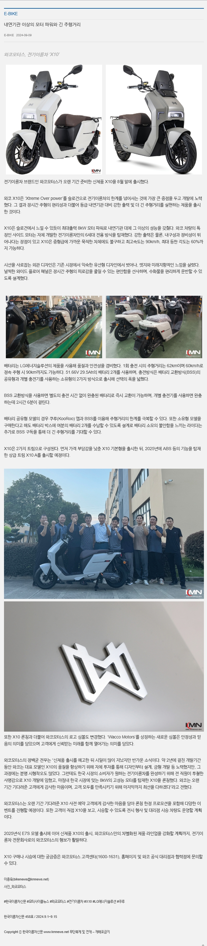 와코모터스 X10 출시(한국이륜차신문 458호)